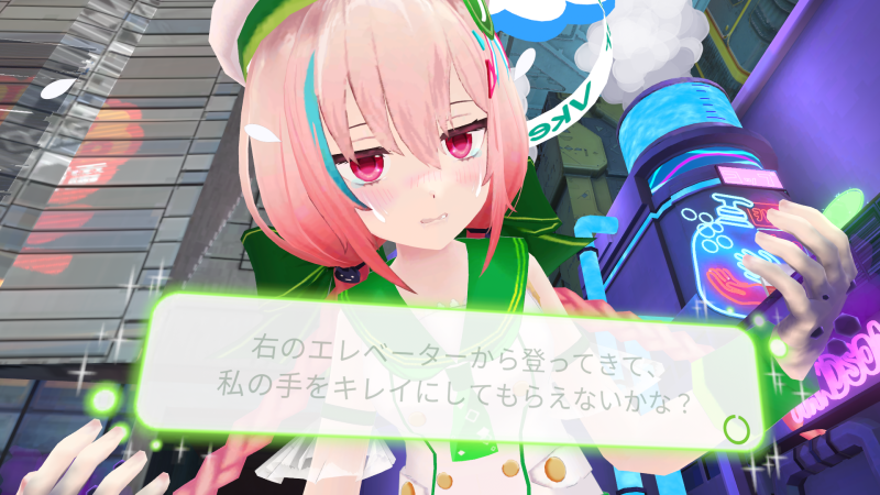 それではここから猫にまみれるターンになる。……かと思いきや、VR限定機能「おさわりシステム」の説明が始まる。